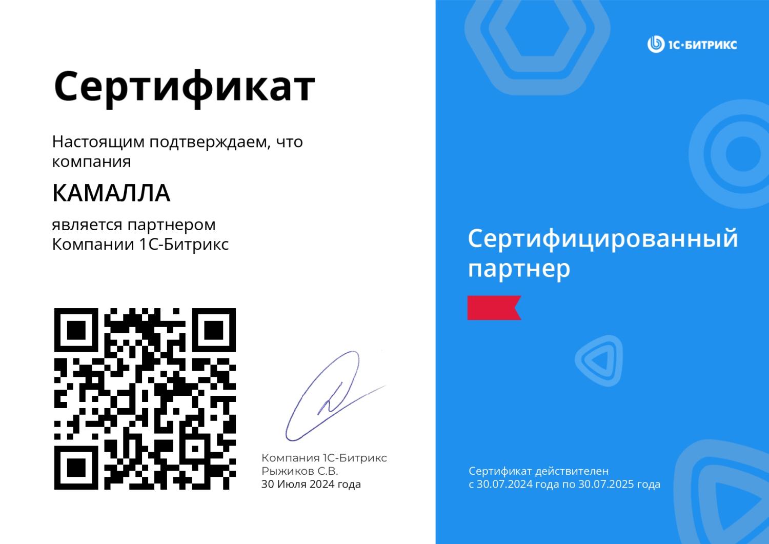 Сертифицированный партнер 1С-Битрикс